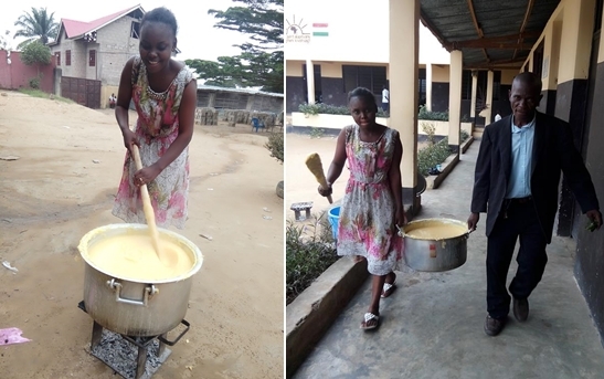 Az azonban, hogy A KONGÓI TANÁROK A PRÓBAHÉT SIKEREIN FELBUZDULVA ÖNMAGUKTÓL FOLYTATTÁK A TÍZÓRAI PROJEKTET, még kinti munkatársunkat is meglepte! Mariann múlt héten mit sem sejtve sétált be az iskolába, ahol arra lett figyelmes, hogy sok szorgos kéz főzi, keveri, cipeli, majd kiosztja az ételt. Hatalmas öröm és meglepetés volt ez számunkra!