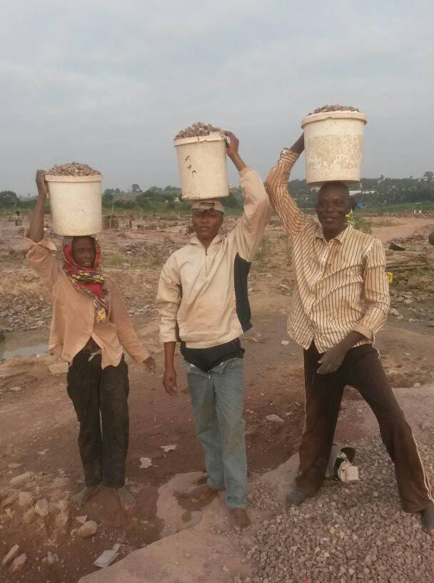 Itt láthatjátok Andrét a szüleivel, a Kongó folyó mentén, kőtörés közben: