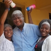 Egy diáktámogatónk saját kezűleg ad át ajándékot örökbe fogadott gyermekének Kongóban