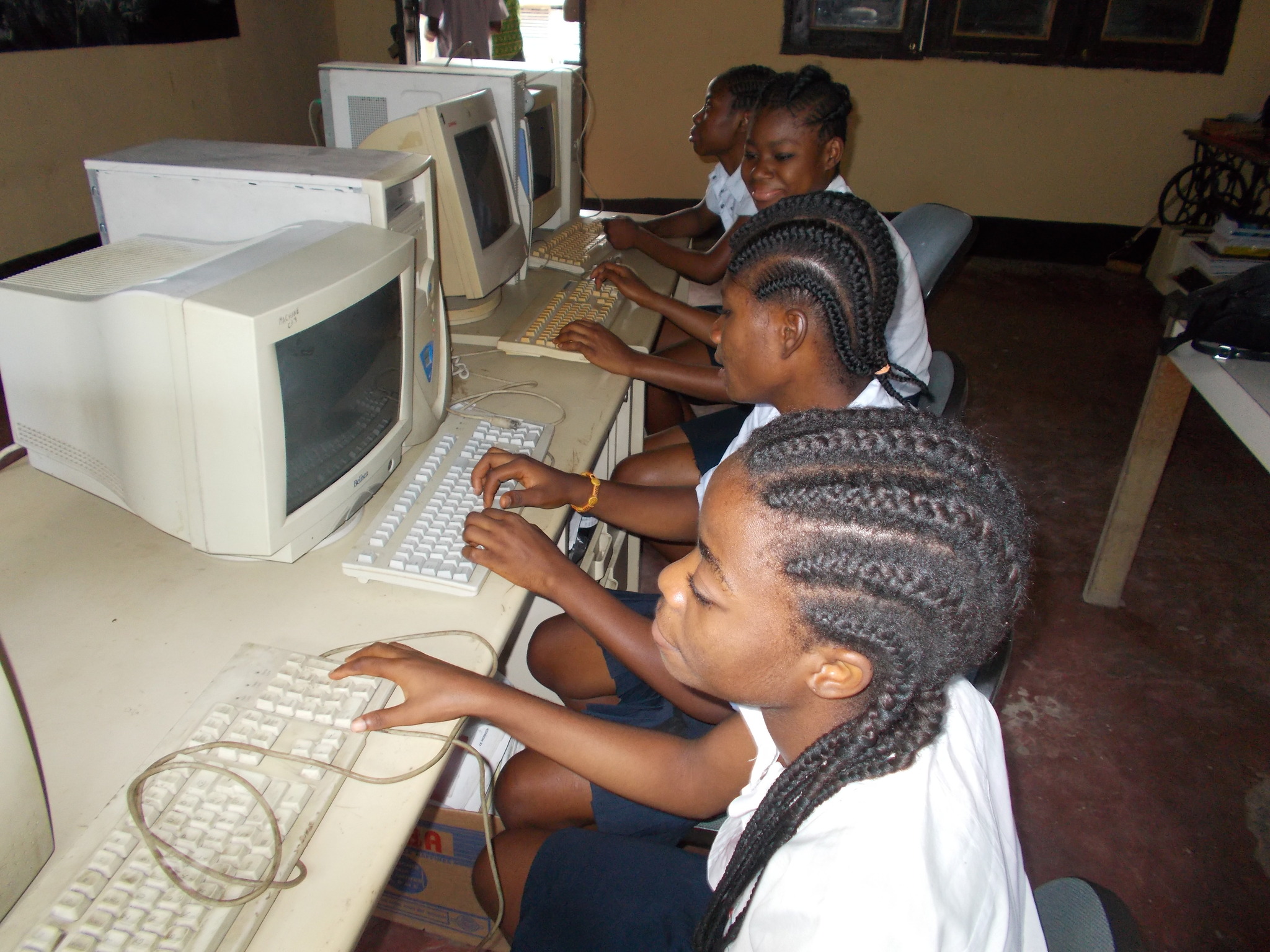 Ahogy előző cikkünkben olvashattátok, a kongói gyerekek legtöbbször gépírásórán, írógépeken tanulják a számítástechnikai ismereteket. Alapítványunk azonban mindig fontosnak tartotta, hogy a gyerekeknek mutathassunk egy MODERNEBB VILÁGOT, így az iskolának nem csak áramot, hanem régi számítógépeket is biztosított. Talán mondanunk sem kell, hogy a gyerekeknek mennyivel élvezetesebb volt elsajátítani SZÁMÍTÓGÉPEKEN a megszokott gépírás tananyagot...