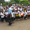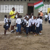 Ebben a faluban is el kell kezdeni azt a társadalmi tudatformálási munkáját az Alapítványnak, hogy fontos, hogy a gyerekek iskolába járjanak, ezt tudatosítani kell egyes (a legtöbb) szülőben. A képzettség nélküli szülők jelentős része nem érti az iskoláztatás jelentőségét, ezért a gyermekei sem járnak iskolába. Ezt a munkát a ngamanzoi partnereink végzik. Ami leginkább szívderítő volt, hogy láttuk a gyerekek odaadását az új iskolájukért. Ezt látva tudtuk, hogy megérte az iskolaépítés, hiszen a gyerekek már most becsülik az intézményt. Sikerült eltüntetni a maradékokat az udvarról, a homokot elsimítani, megépíteni a tribünt, és közben a kőművesek is megérkeztek, akik felrakták a kimaradt ajtót. Minden szépen alakult az első pánik után. A molinók és reklámtáblák a helyükre kerültek, a magyar és a kongói zászlót kiűztünk a falra. Néhány mini zászlóból a gyerekek új divatot találtak maguknak pl. a lányok hajukra tűzték, a fiúk pedig az ing zsebükre. Volt akinek fordítva volt, de sebaj. Az örömünk egyre jobban fokozódik. A gyerek „ünneplőben” érkeznek már. Ők most már nem dolgozók, nem segítők, se nem halászok, hanem iskolások, akik élvezni fogják az emberek egyik legalapvetőbb jogát, az oktatást, méghozzá normális körülmények között. Az eddigi kínzó bambuszrudak helyett, amiken ültek, korszerű, az Oktatási Minisztérium által bevizsgált és elfogadott padokon fognak ülni.