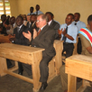 A beszédek után elvágtuk a szalagot, majd körbevezettük a vendégeket az iskolán, a felnőttek – a miniszterhelyettessel együtt – kipróbálták a padokat (ez igazi ritkaság Kongóban), majd persze a gyerekek is. Közös éneklések következtek. Örömteli dolog volt látni, hogy mindenki milyen boldog. Ugyanígy meg voltam hatva 2006-ban, amikor ez első iskolánkat adtuk át, és ma is meg vagyok hatva a gyerekek örömétől.