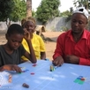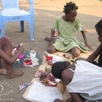 A siketmissziótól kaptam két kis színező füzetet minden gyermek számára, amikben van olyan feladat is, hogy a kép egy részletét számok összekötése segítségével nekik kell megrajzolni. Az egyik füzetet most hétfőn fejeztük be, ez Noé történetét mutatta be. Nagyon tetszettek a gyerekeknek az összekötős feladatok. Nincsenek nekik olyan játékaik, feladatlapjaik, amik ilyen játékos fejlesztő feladatok lennének. Nagy türelemmel és nagy precízséggel színezgették a képeket. A színes ceruzák persze hamar elkopnak, hegyezni kell őket, ami nem olyan egyszerű, a hegyező használatához még hozzá kell szokni. Színes ceruzákat én nem láttam másikakat, csak amiket én hoztam – az Alapítvány küldte a gyerekeknek. Olyan nincs, hogy ők leüljenek és rajzolgassanak, mert nincs papír! Néhányat hoztam magammal, de az nem sok rajzolgatásra ad lehetőséget sajnos.