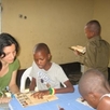 Az egyik beszámolómban írtam arról, hogy nem nagyon akarnak velem beszélni a gyerekek. Mert az anyanyelvük a lingala! Franciául nincs nagyon gyakorlatuk. Meg aztán lehet, hogy tényleg új voltam, ezért nem beszéltek velem. Szótlanságuk ellen próbáltam kitalálni dolgokat. Az egyik az volt, hogy elkezdtem lingalául tanulni. Saját játékuk közben odaültem melléjük és kérdezgettem őket. Már az első percben teljesen megváltoztak irányomba! Rögtön elkezdtek nyüzsögni körülöttem és majdnem egymás szavába vágva mondogatták nekem a dolgokat, hogy mi micsoda, hogyan kell mondani, kiejteni lingalául. Persze jókat nevettünk közben, mert nem könnyű a kiejtés. Pl. a ’babus’ szóra magam is rájöttem, hogy az a papucsot jelenti, nagyon tetszett nekik, hogy magyarul is hasonló. Nagyon szeretnek fényképeket vagy filmet nézegetni a laptopomon, ezért azt mondtam nekik, hogy aki nem válaszol x kérdésemre, az nem nézheti a filmet. Ez a módszer nem tetszik nekem, mindenesetre elkezdtek beszélni franciául, érdekes módon valahogy összeszedték magukat és válaszoltak! Azóta már beszélgetnek is velem franciául.