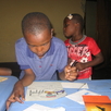 Az árvaházban a mai nap programja: aki akar, levelet ír a támogatójának. Ez így jó is, mert így nem baj, ha néha lelépek a mellékhelyiségbe… Valószínűleg a csapvíz okozta a problémát, amit egy ideje már felforralás után iszok. Előtte flakonos vizet ittam, azzal nem volt probléma. A kapott levelek és fényképek nagy sikert aratnak. Érdeklődéssel hallgatják a gyermekek a leveleket, beszámolókat egy-egy ember életéből, kutyáiról, stb. A fényképek nagyon fontosak! Hosszú percekig nézegetik őket, mintha azáltal megpróbálnák még jobban megismerni a rajtuk szereplő embereket, állatokat. Ezután a gyerekek egy része nagy lendülettel, de kicsit kevesebb önbizalommal van a levélírás felé. Mert a levelet franciául kellene írniuk. Nem könnyű feladat ez számukra. Több-kevesebb hibával, de aki akarta, annak sikerült! Rigean nagyon igényes. Tudja, hogy nem fog tudni sima lapra egyenesen írni, ezért odaadom neki az utolsó vonalas lapomat, ami maradt a naplómban. Úgyis már az utolsó napon vagyok, nincs már rá szükség. Az ő levele piszkozatban nagyjából már készen van, néhány mondat kell még hozzá. Az gyorsan meg is van. Átmásolja lassan, figyelmesen a vonalas lapra. Írás közben semmi nem zökkentheti ki munkájából. Mellette Tchava írja üzenetét. Ő vállalkozott arra, hogy sima lapra írjon. De ő már egyetemista, van ebben gyakorlata. Nagy örömmel vette támogatójának érdeklődését. Sarah: nagyon szeretne írni. De sajnos neki elég nehezen megy az írás-olvasás. Végül sok bíztatás után mégis belefog. Sajnos indulni kell nemsokára, így Mama Léontine fejezi be az ő levelét. Isaac: az örökmozgó, energiaforrás, élő zenelejátszó, bármikor lehet rá számítani, hogy énekeljen valamit. Most ő filctollat ragad, és készít egy képet Israel támogatójának! Nzuzi nem szól semmit, nagyon komoly, néha kapok egy mosolyt. Sokat dolgozik, majd leül, keres egy tollat meg egy papírt és elkezd írni. Közben elszalad, a megírt néhány sor ott marad az asztalon. Később visszaérkezik, a tollat meg kell keresni, az már más kezében volt azóta, de nincs gond, a másik már befejezte. Szemrebbenés nélkül, komoly úriember módján folytatja az írást.