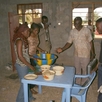 A találkozó után az iskolaépítés helyszínére mentünk. Az iskola szomszédságában lakó asszonyok megkeresték France-ot, elmondták, hogy nagyon hálásak azért, amit az alapítvány, a támogatók tesznek a környék gyerekeiért, és mivel pénzzel nem tudnak hozzájárulni a munkához, felajánlották, hogy főznek a munkásoknak. A munkások az egész napos munka után az egyik tanteremben nagyon jó étvággyal fogyasztották el a szomszédban frissen készített sült halat, pondu-t (spenótra hasonlító főtt zöldség), fufuval (a kenyérként fogyasztott maniókalisztből készült étel) és sok más finomsággal.